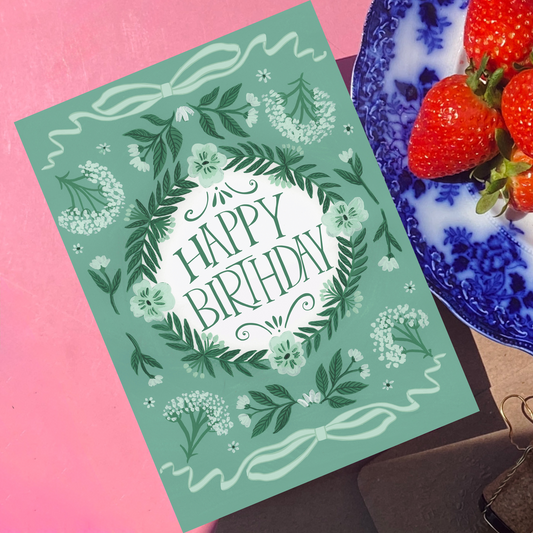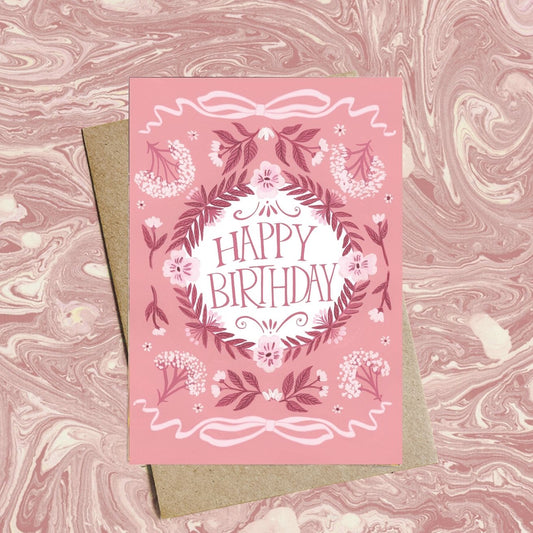 Pink Floral Cow Parsley Happy Birthday Greeting Card