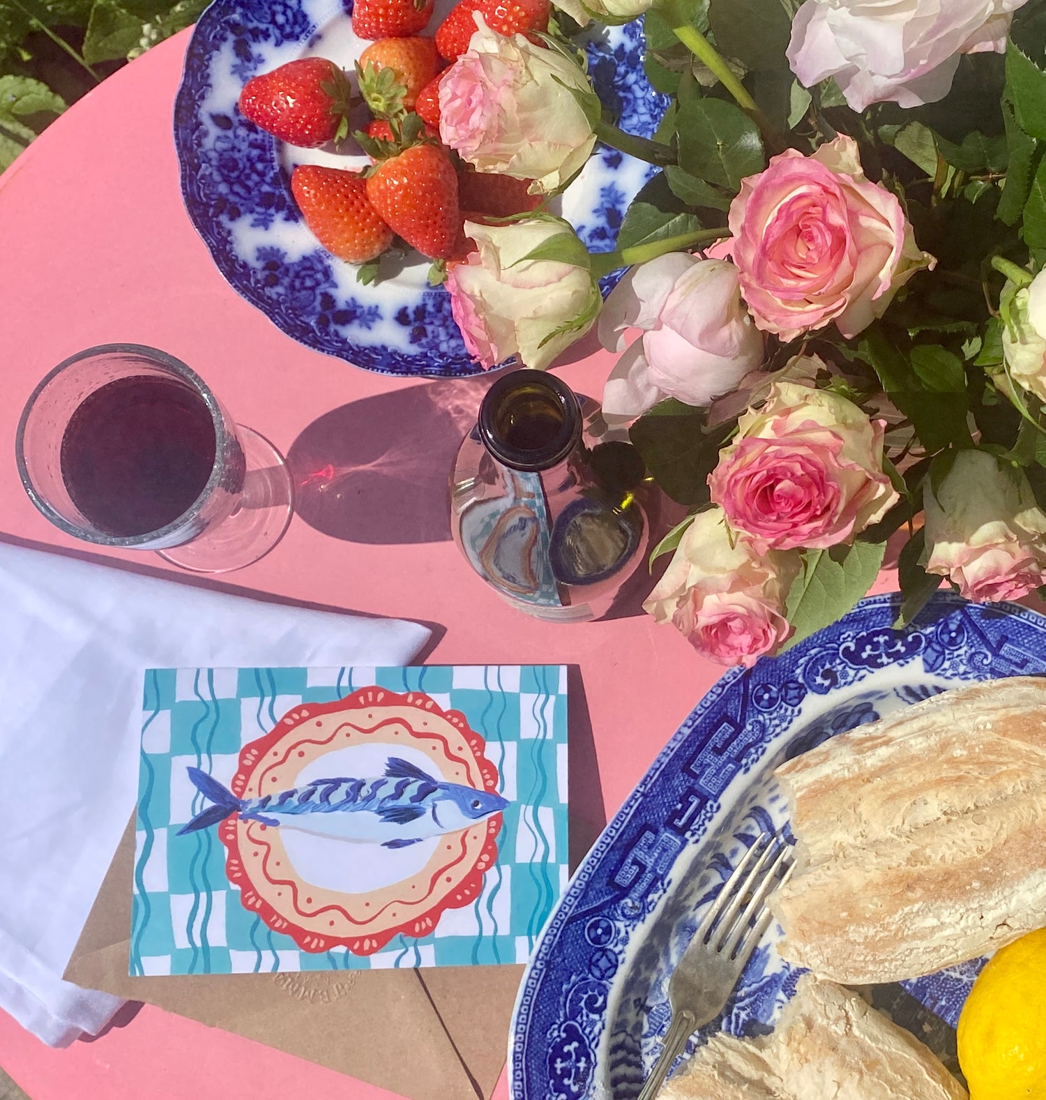 Lemons & Tea Collage Hand Marble Paper Greeting Card