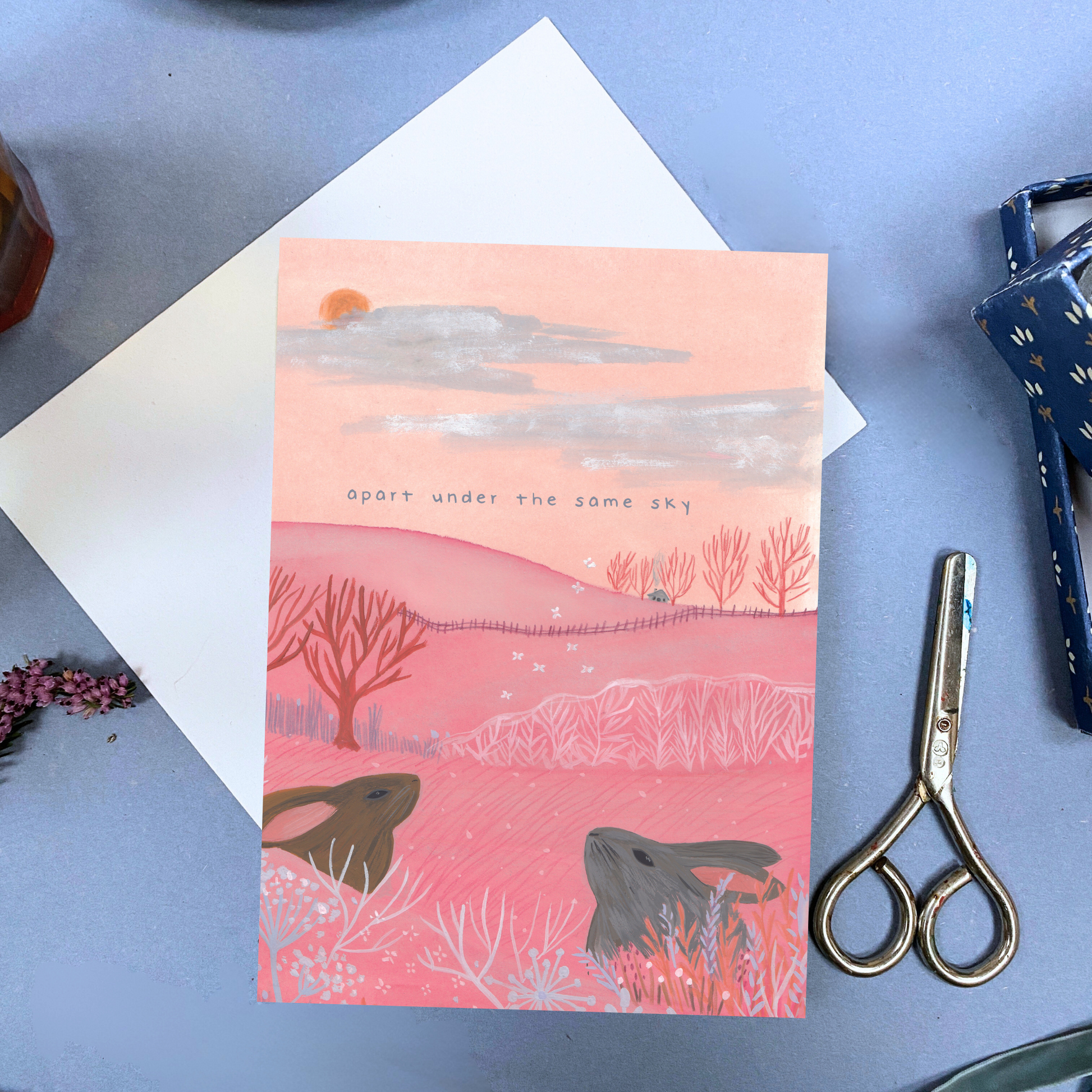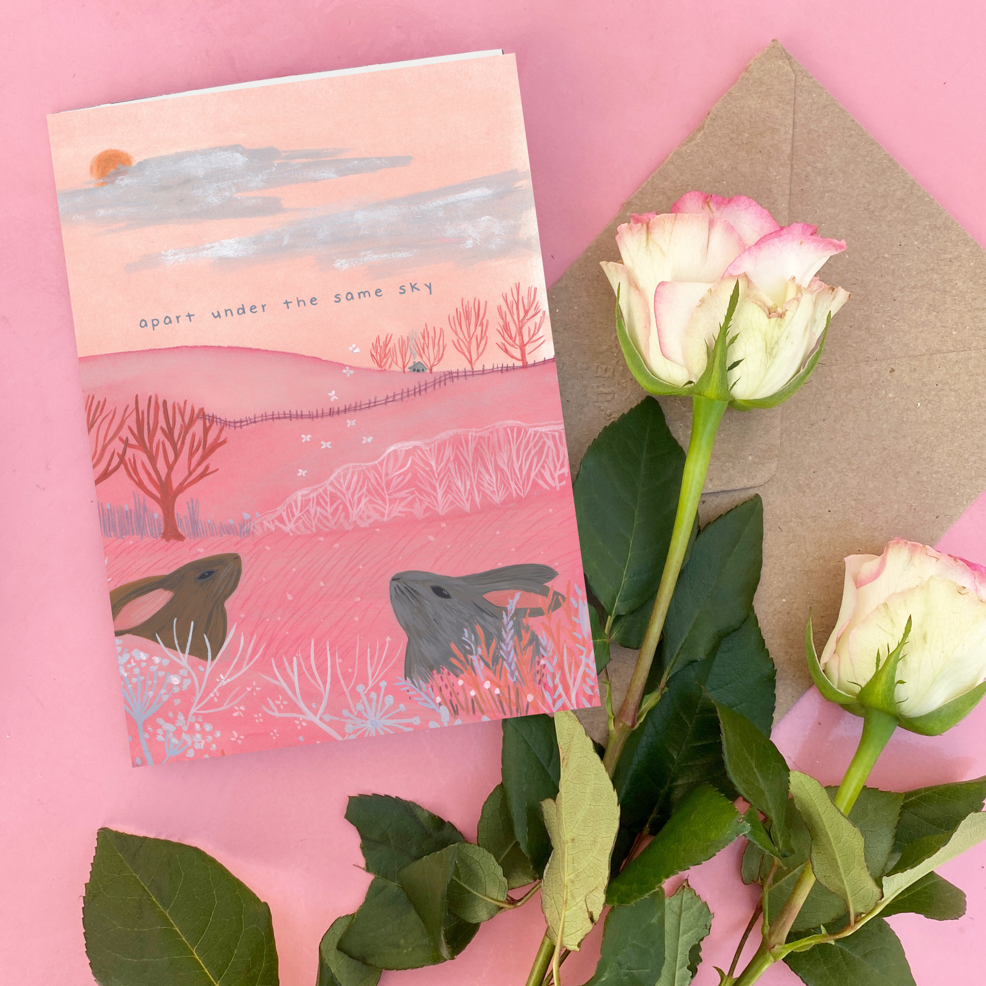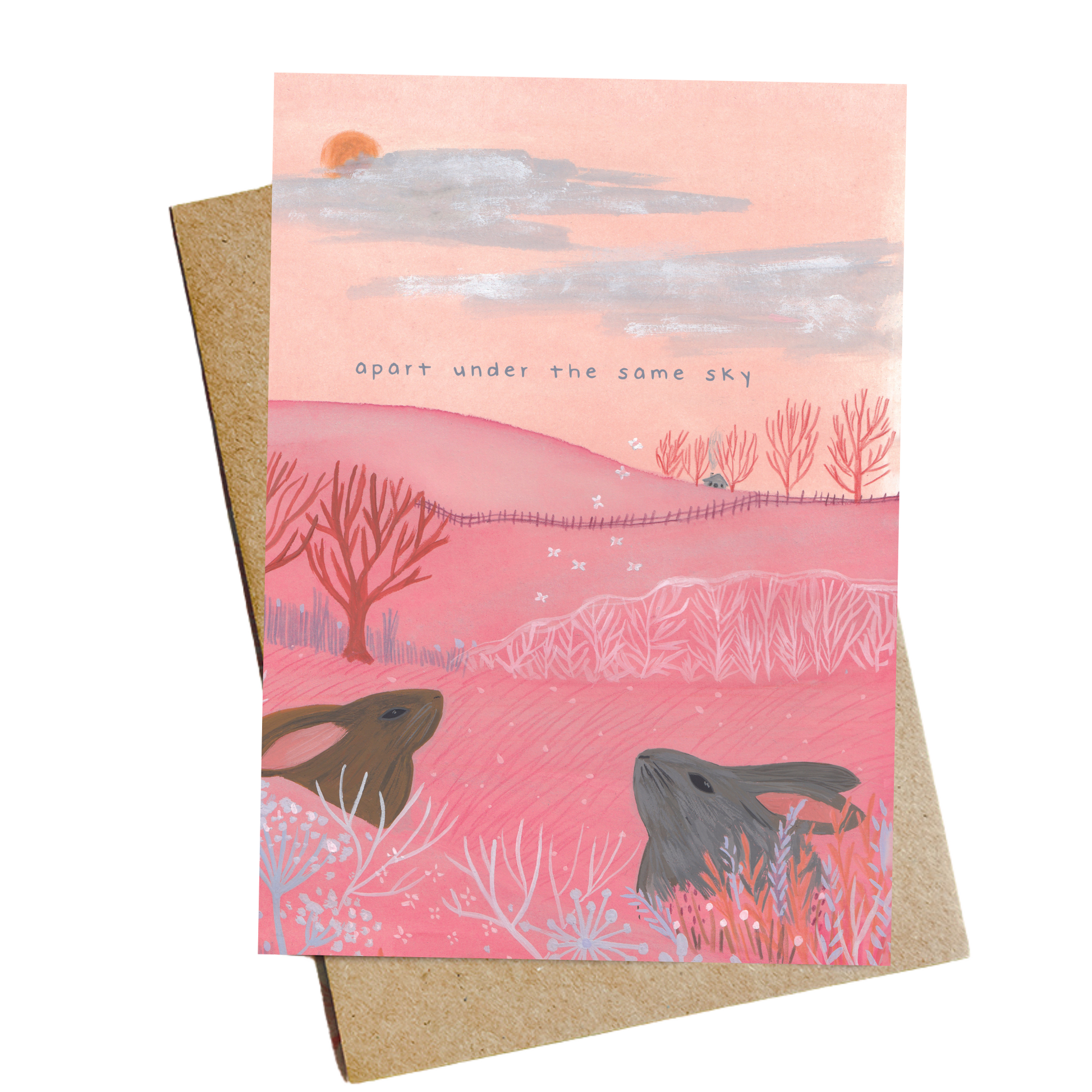 Apart Under the Same Sky - Long Distance Bunny Pink Greeting Card