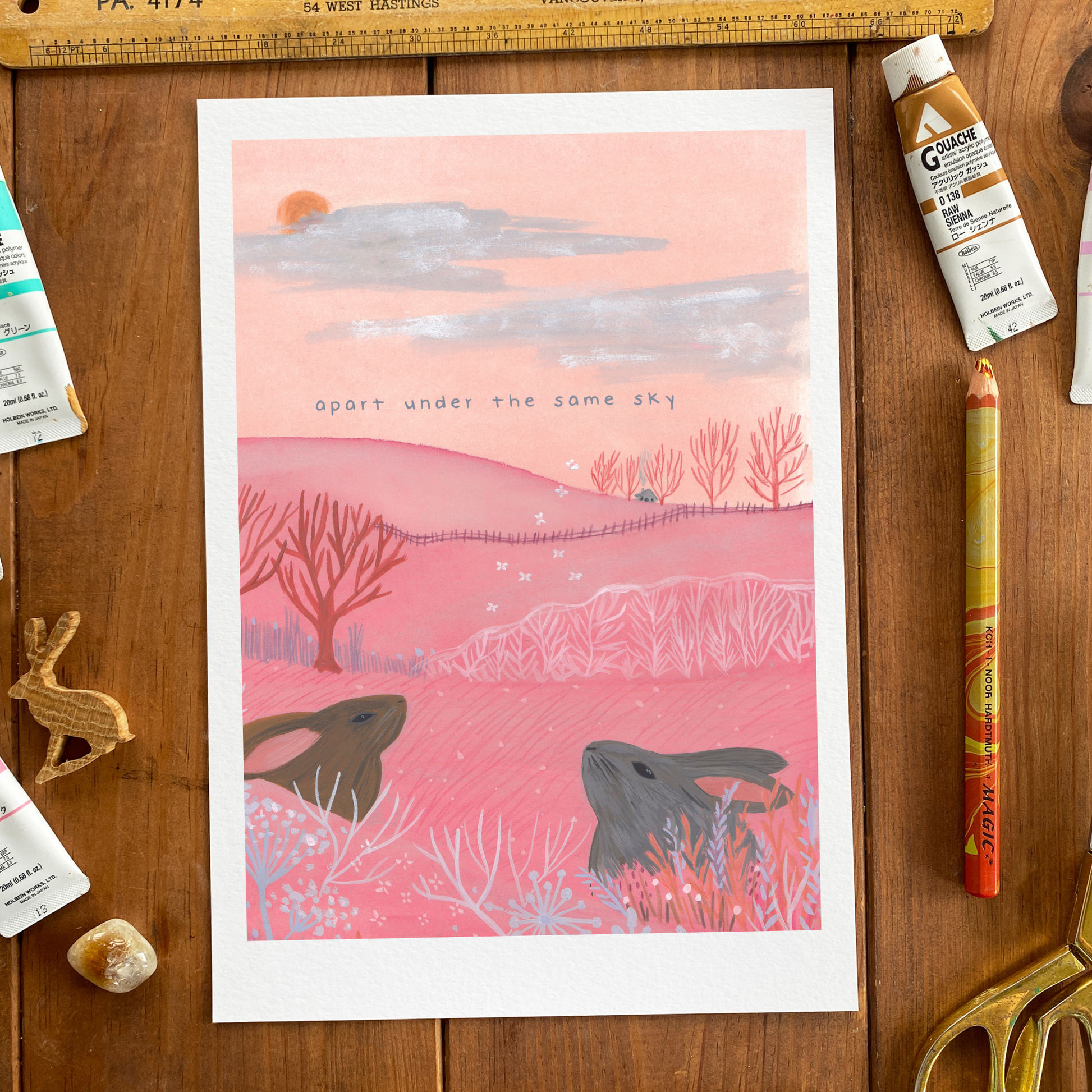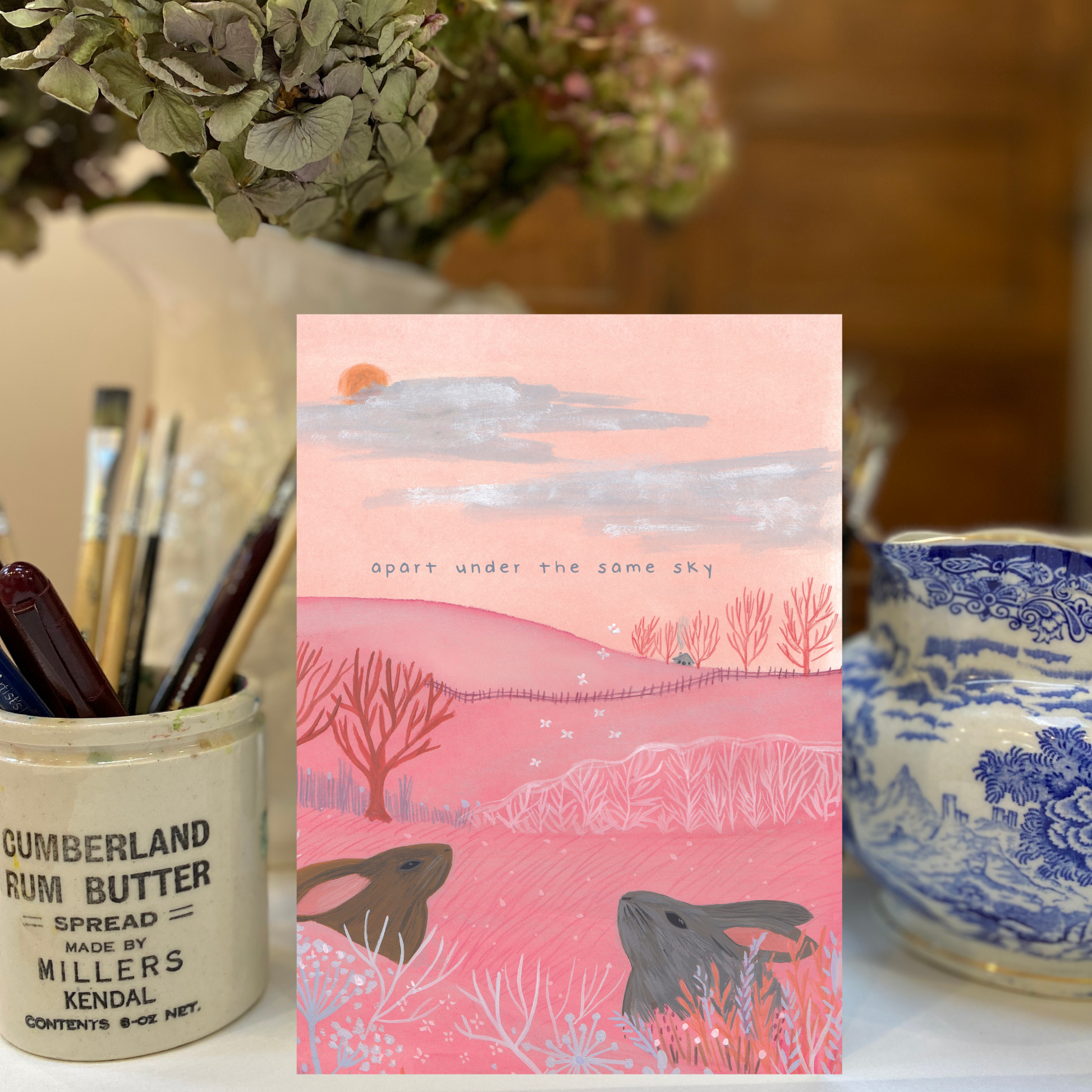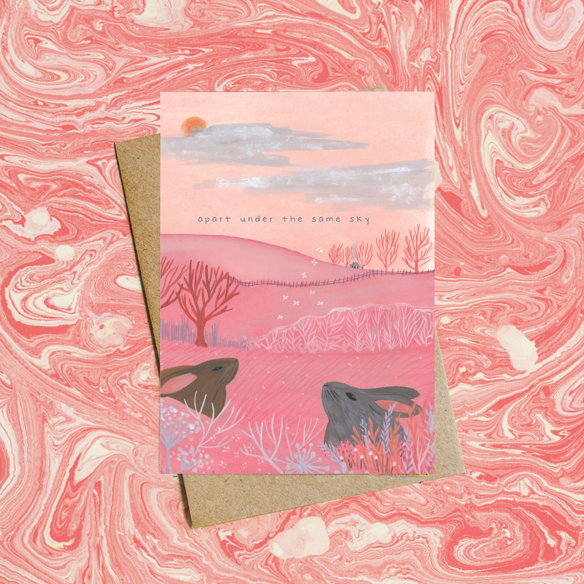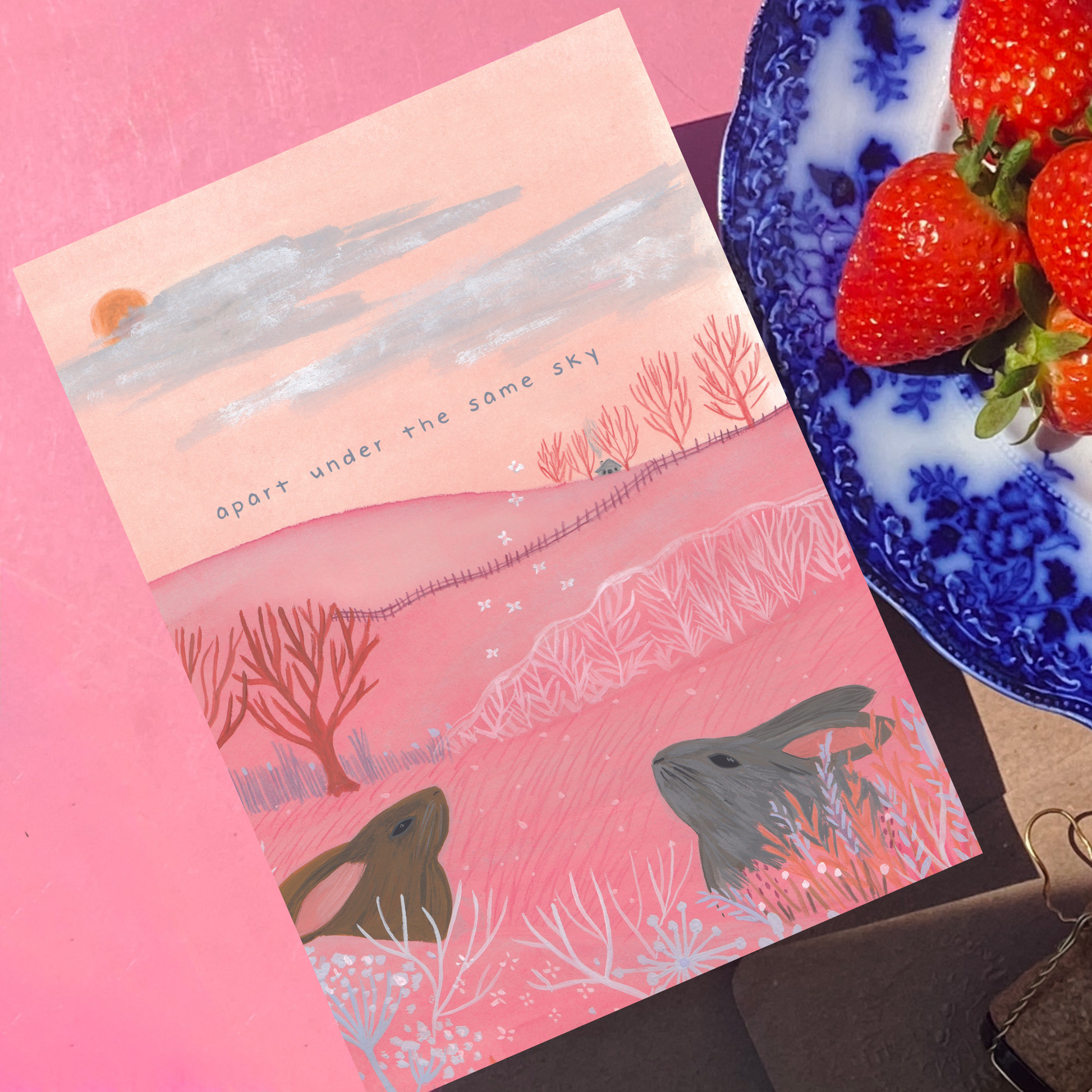 Apart Under the Same Sky - Long Distance Bunny Pink Greeting Card