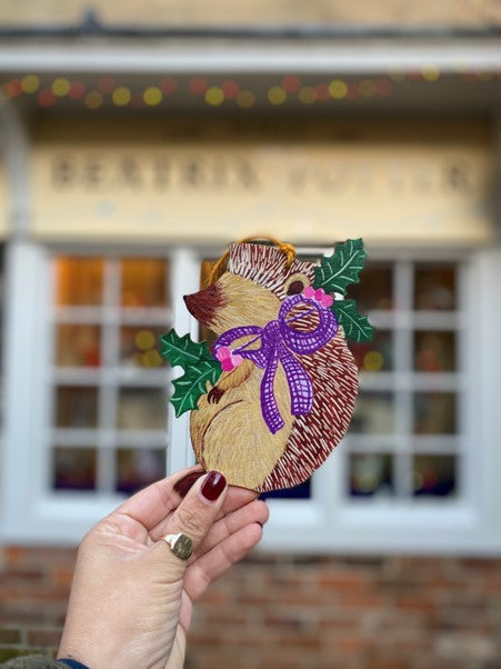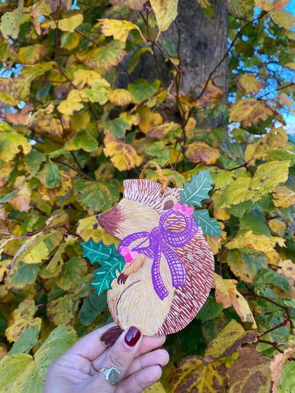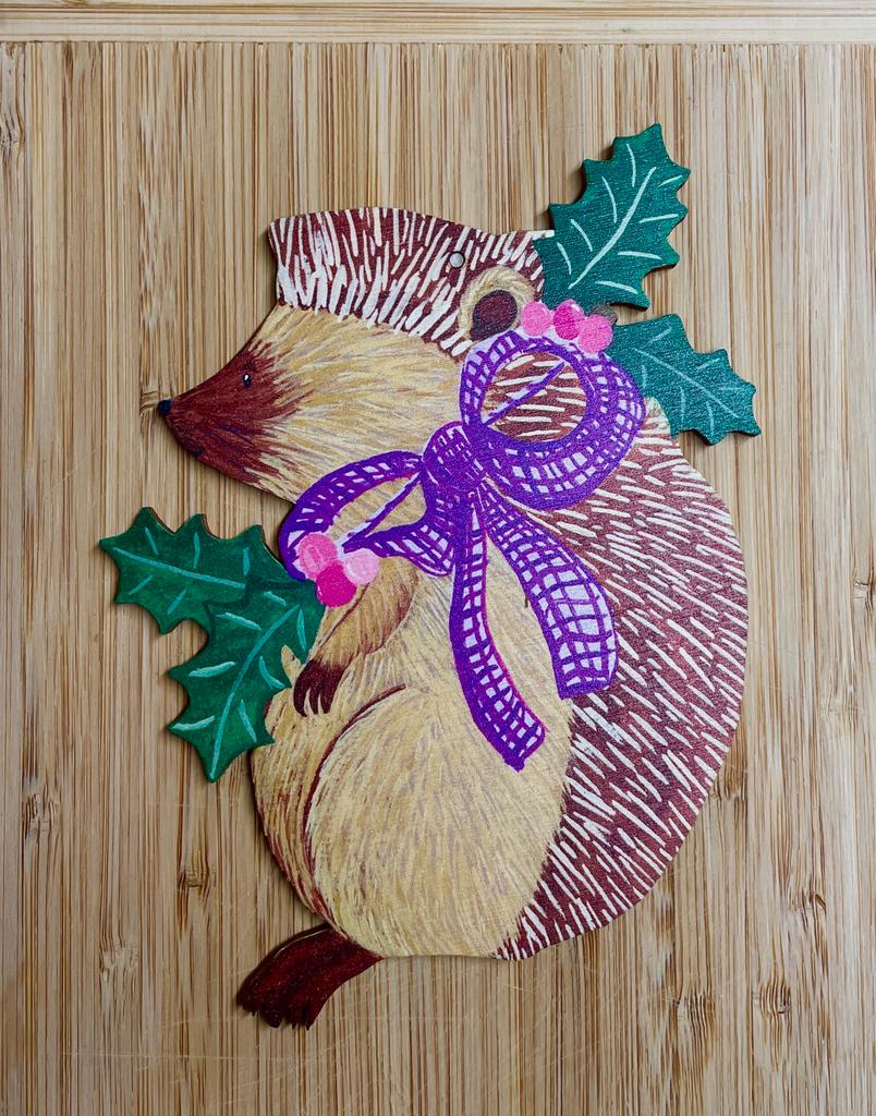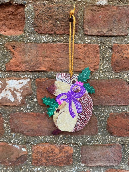 Artisan Christmas Hedgehog Laser-Cut Hanging Tree Ornament