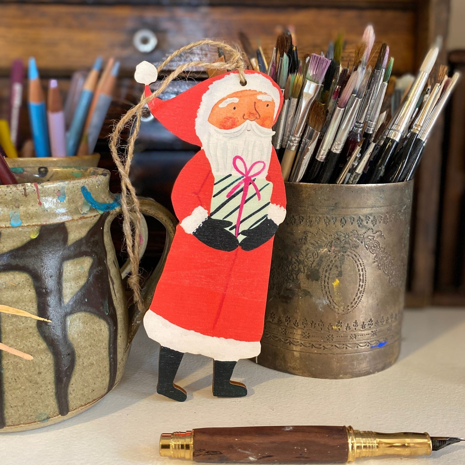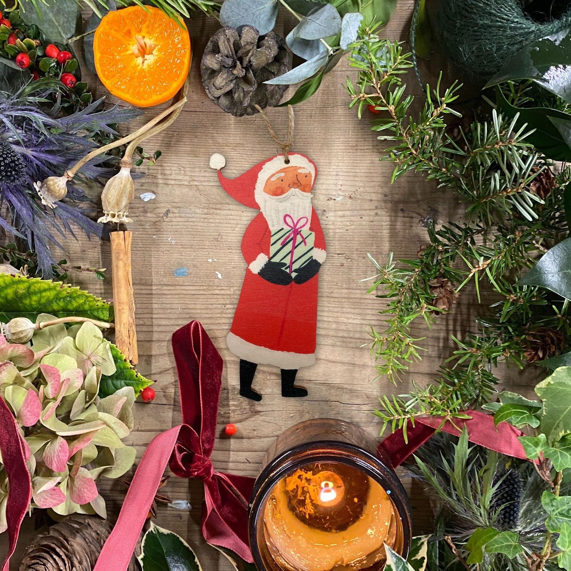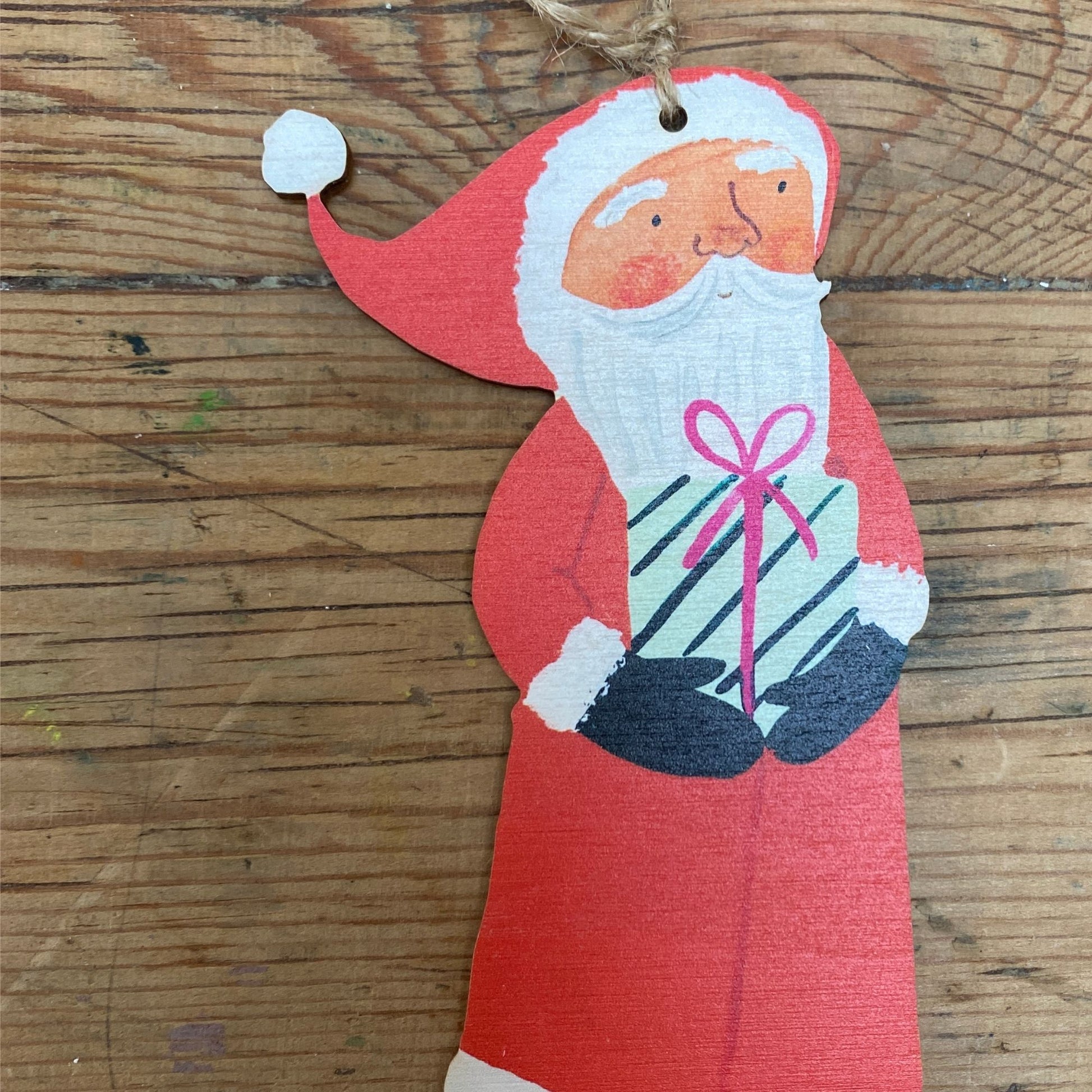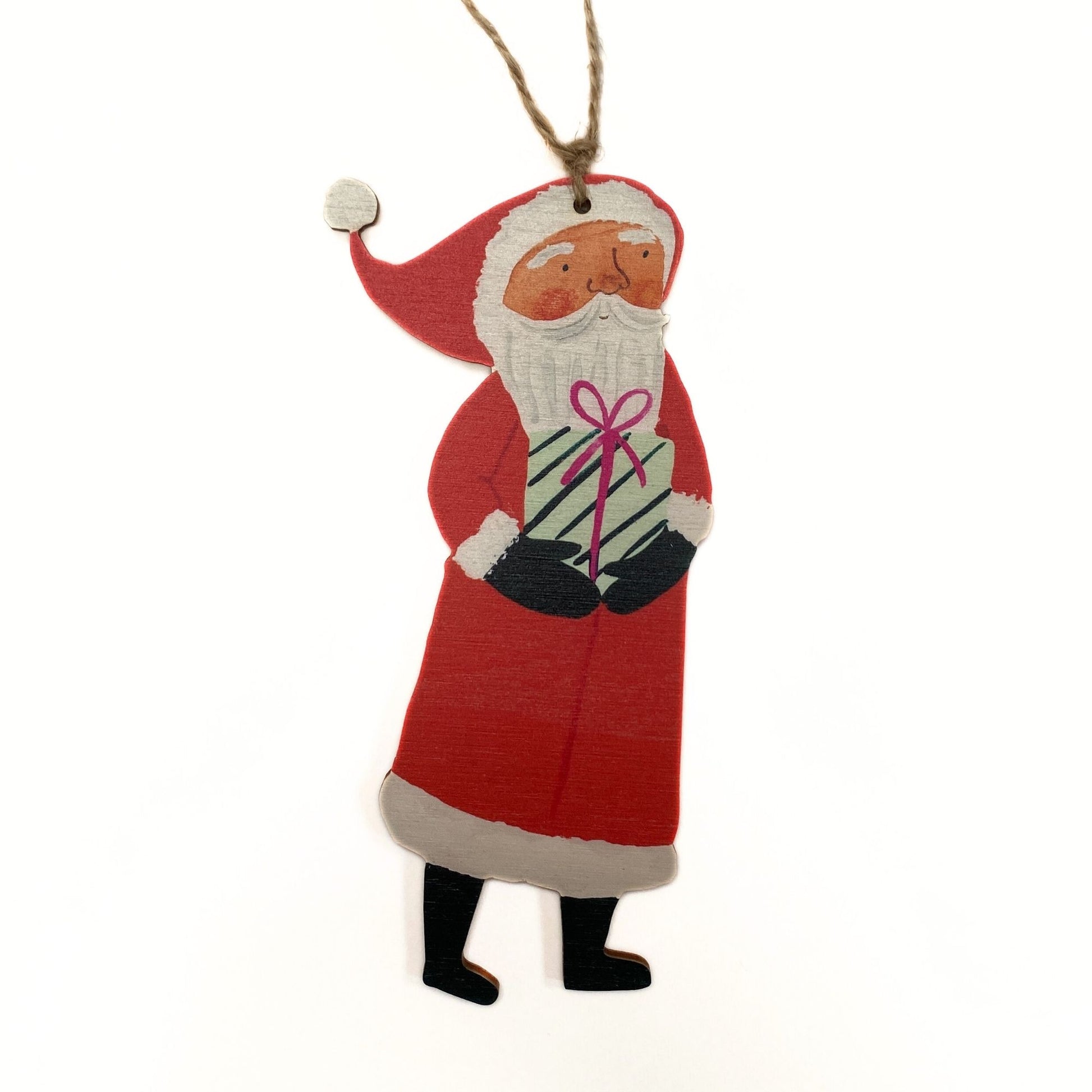 Treat yourself to a Beautiful Christmas Santa Claus Hanging wood ornament. Originally hand designed and hand painted by Jemma Jamie, then laser cut using high quality materials, it's a perfect bright and vibrant gift for your friends and family.