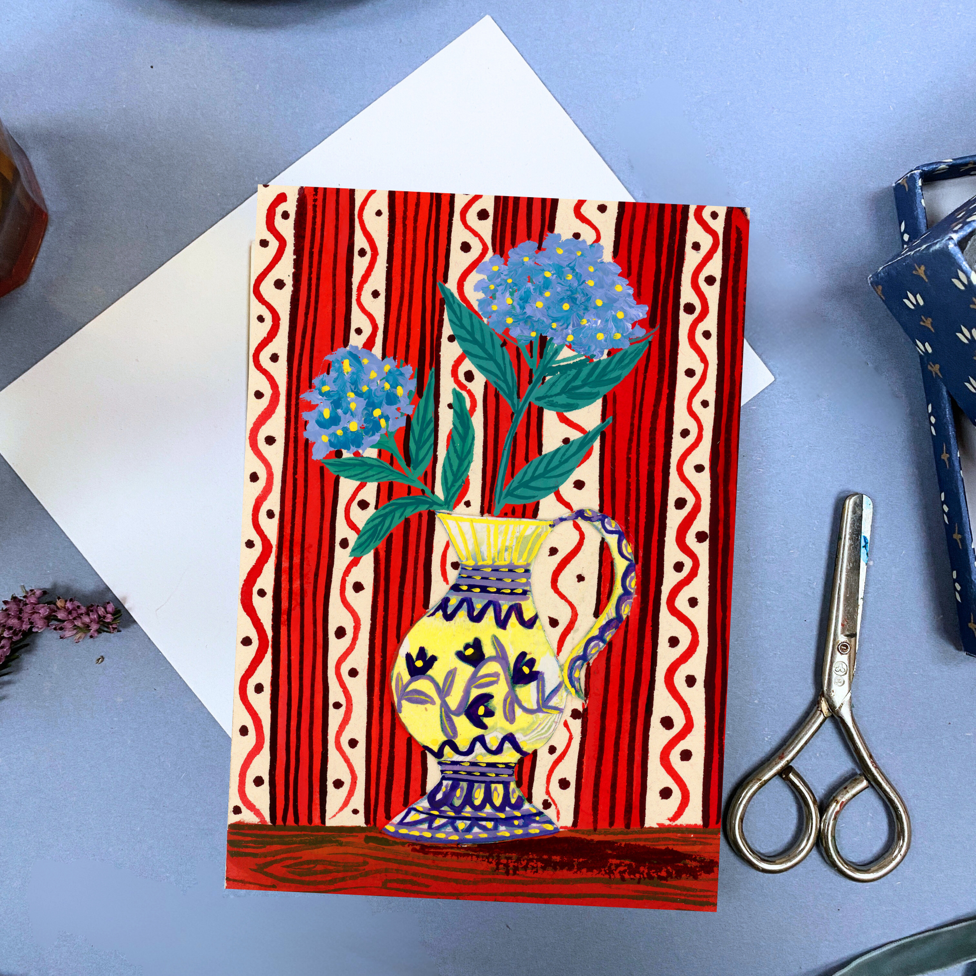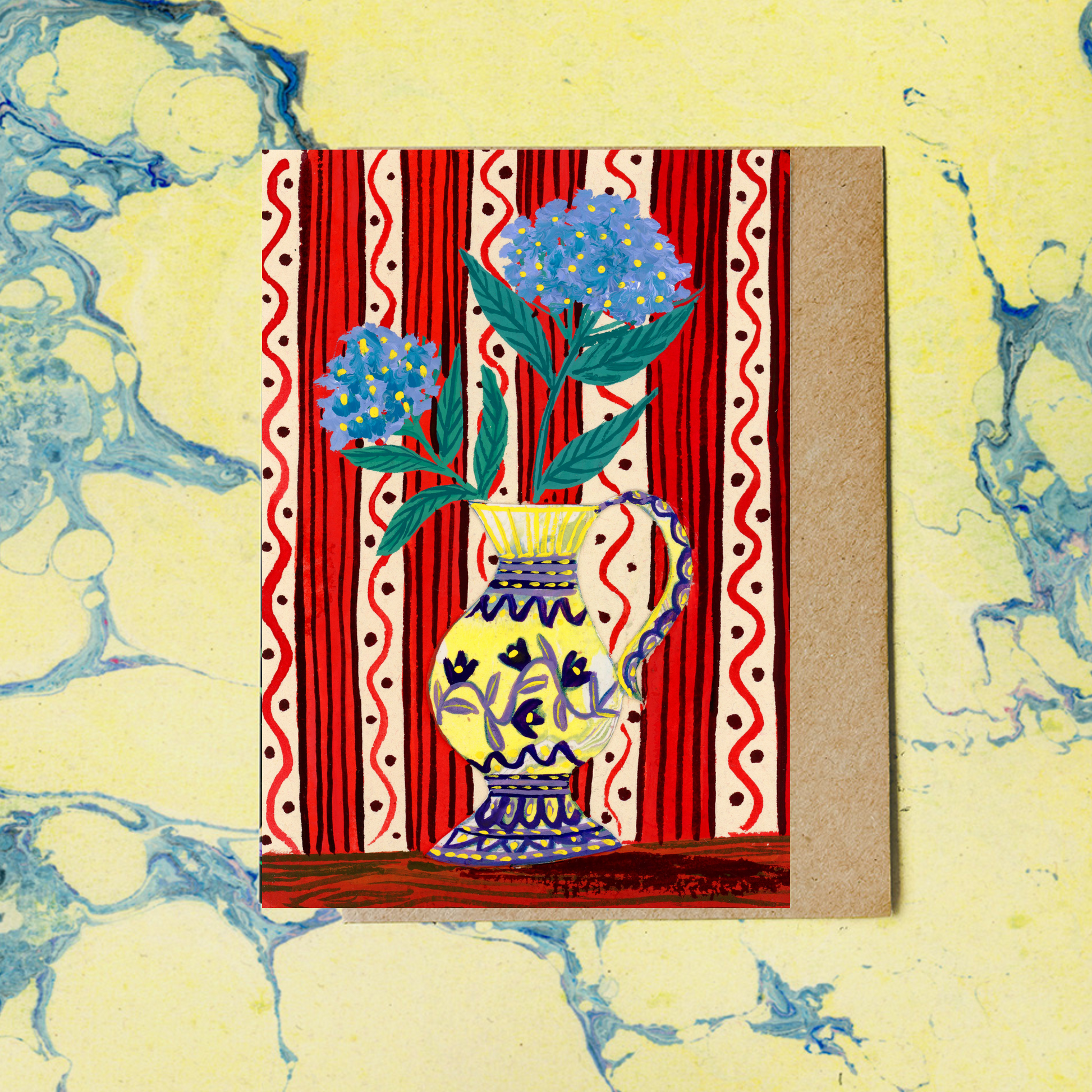 You’ll adore this piece from my collage collection, each card is crafted using hand-painted and hand-marbled papers, often joyful by-products of my picture book practice.