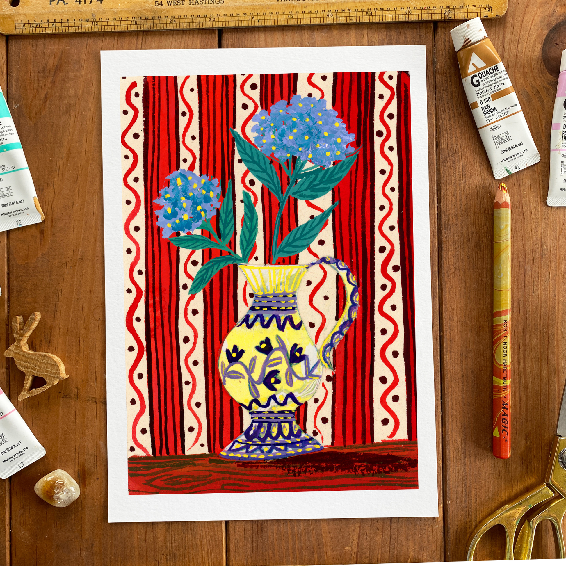 Jemma Art original artworks are created using a combination of high quality materials M.Graham & co. Artists Gouache, Holbein acrylic goulash. and Arches hot press pure cotton paper.