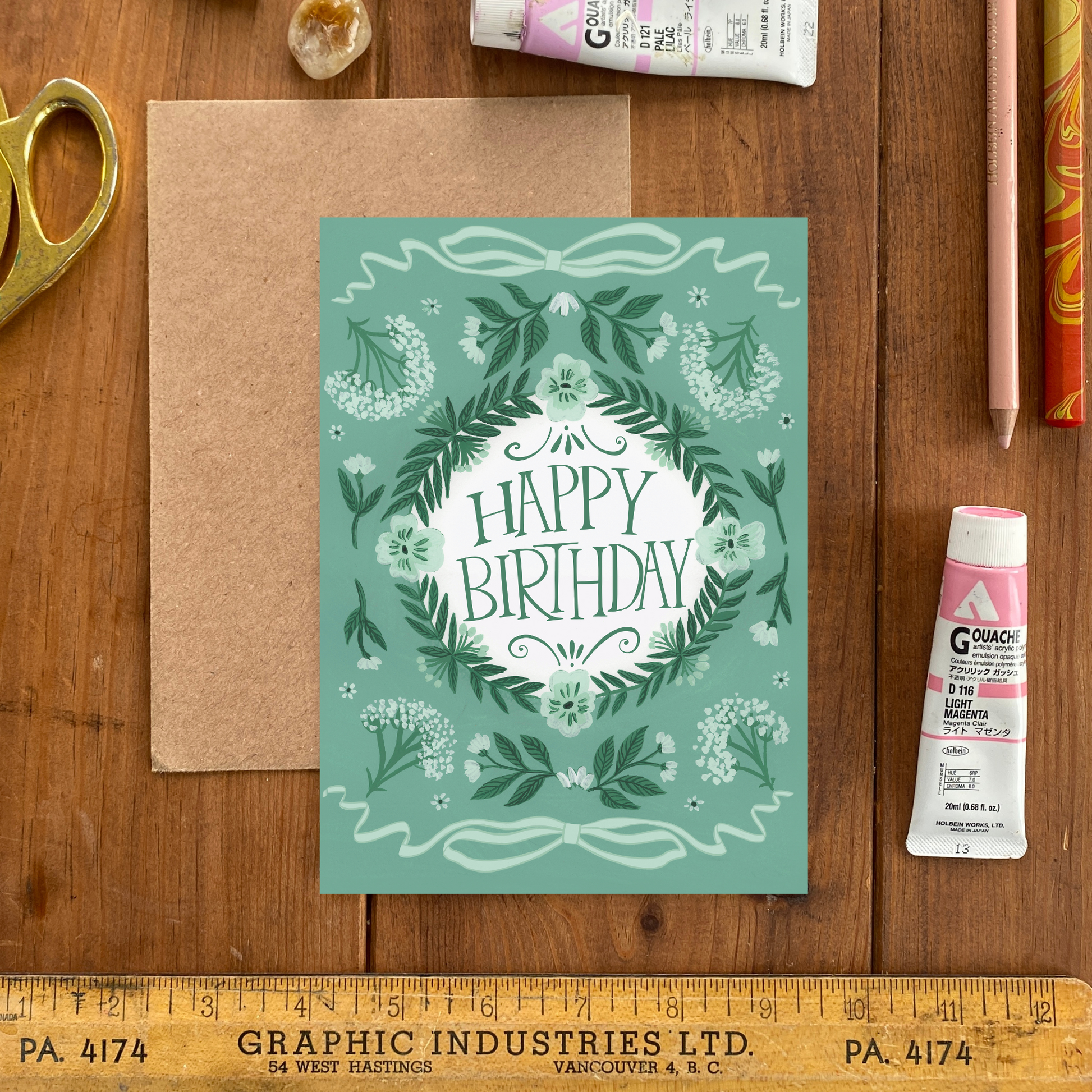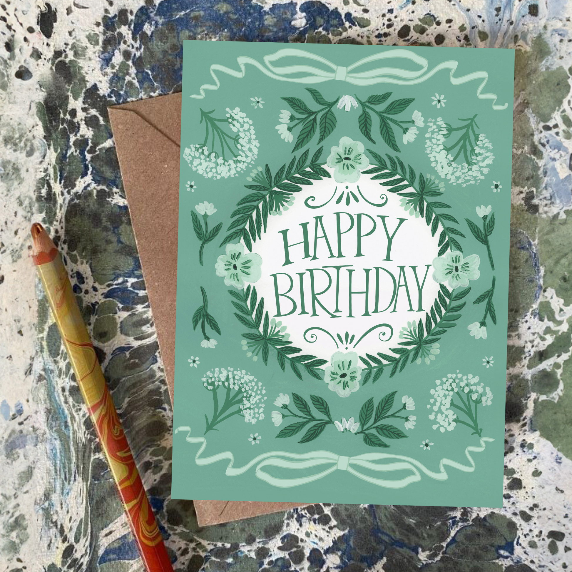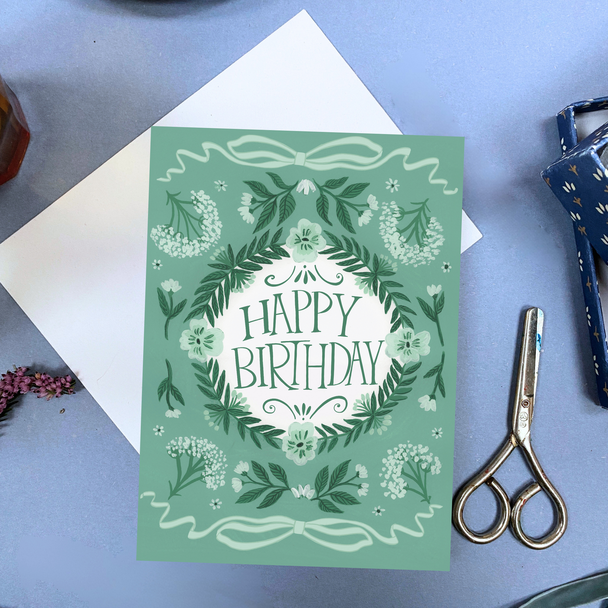 A classic birthday card with a floral, artistic twist, inspired by English summers in the Cotswolds.