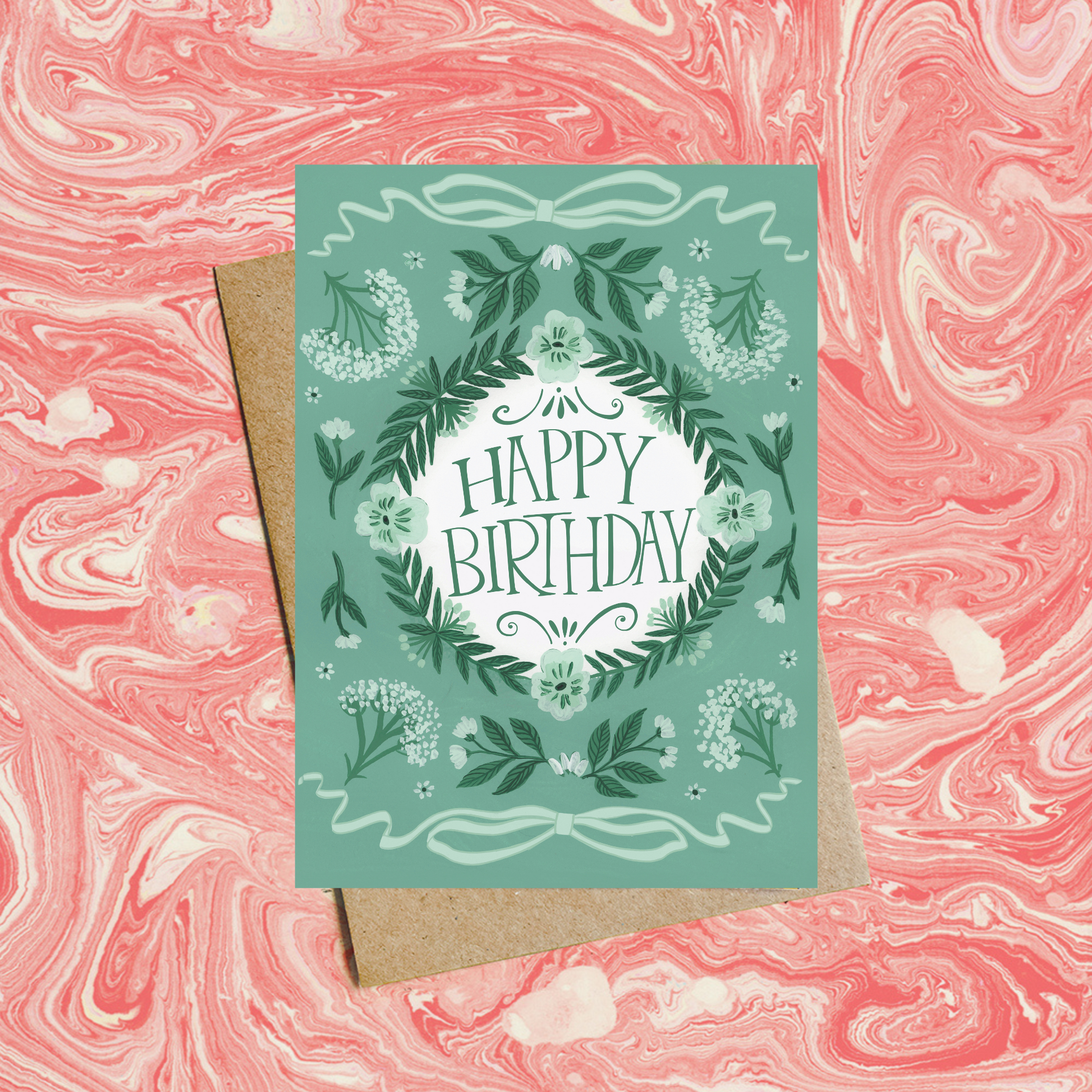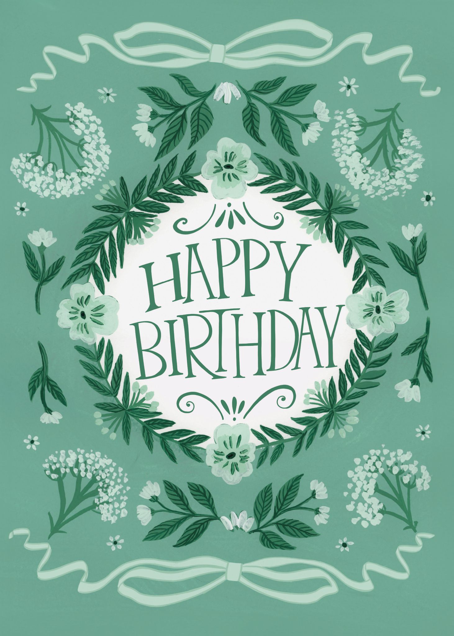 Peppermint Green Cow Parsley Happy Birthday Card