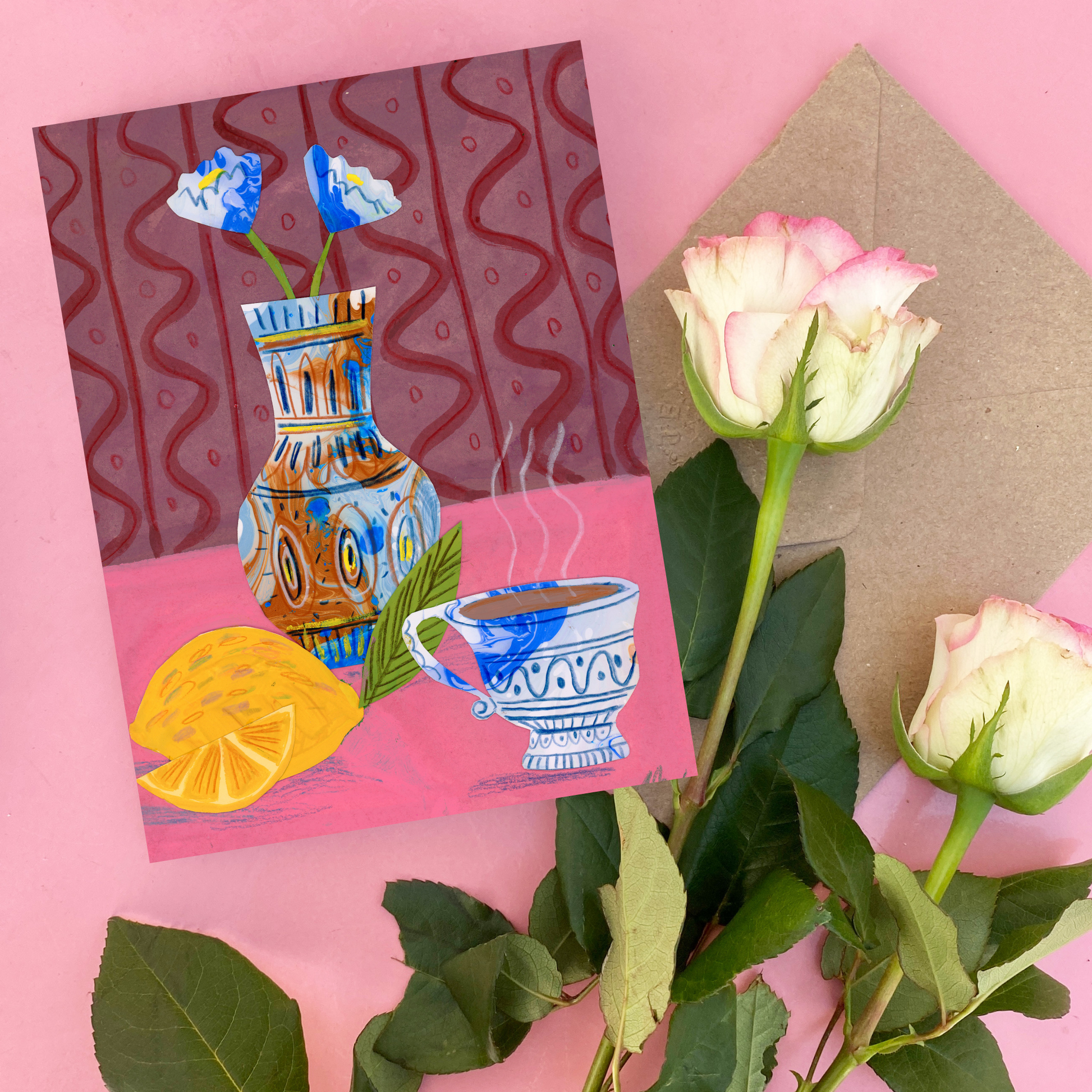 Lemons & Tea – Collage Greeting Card