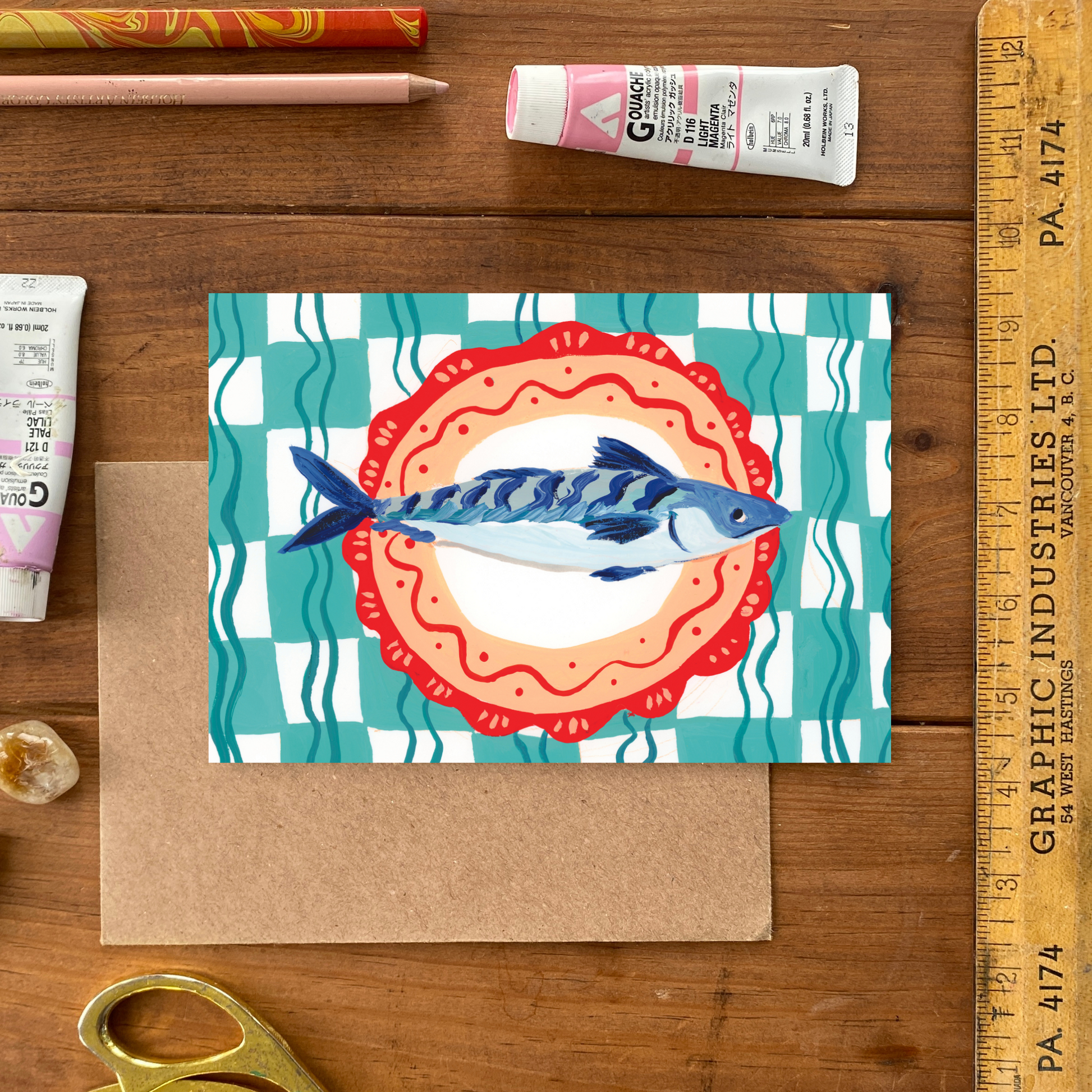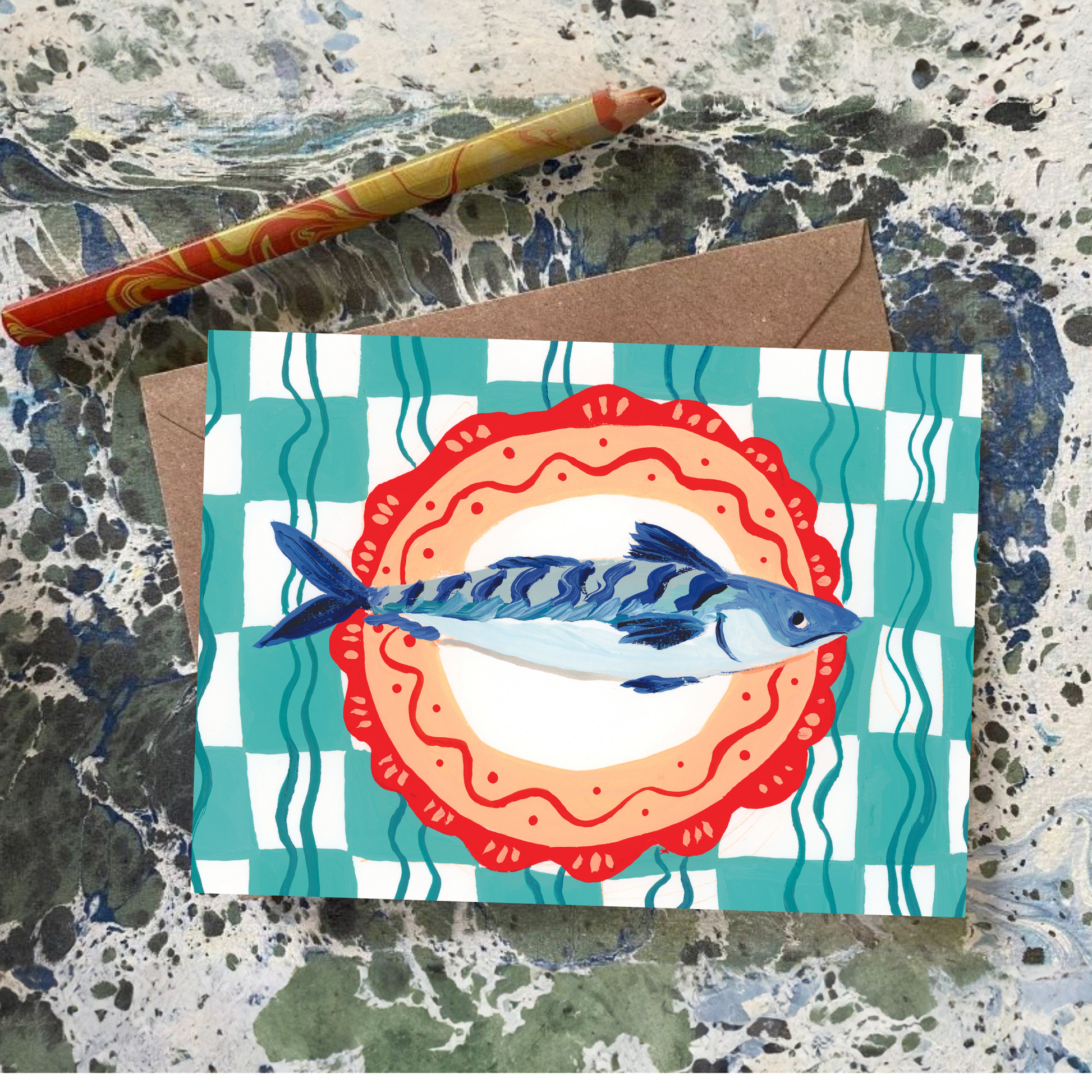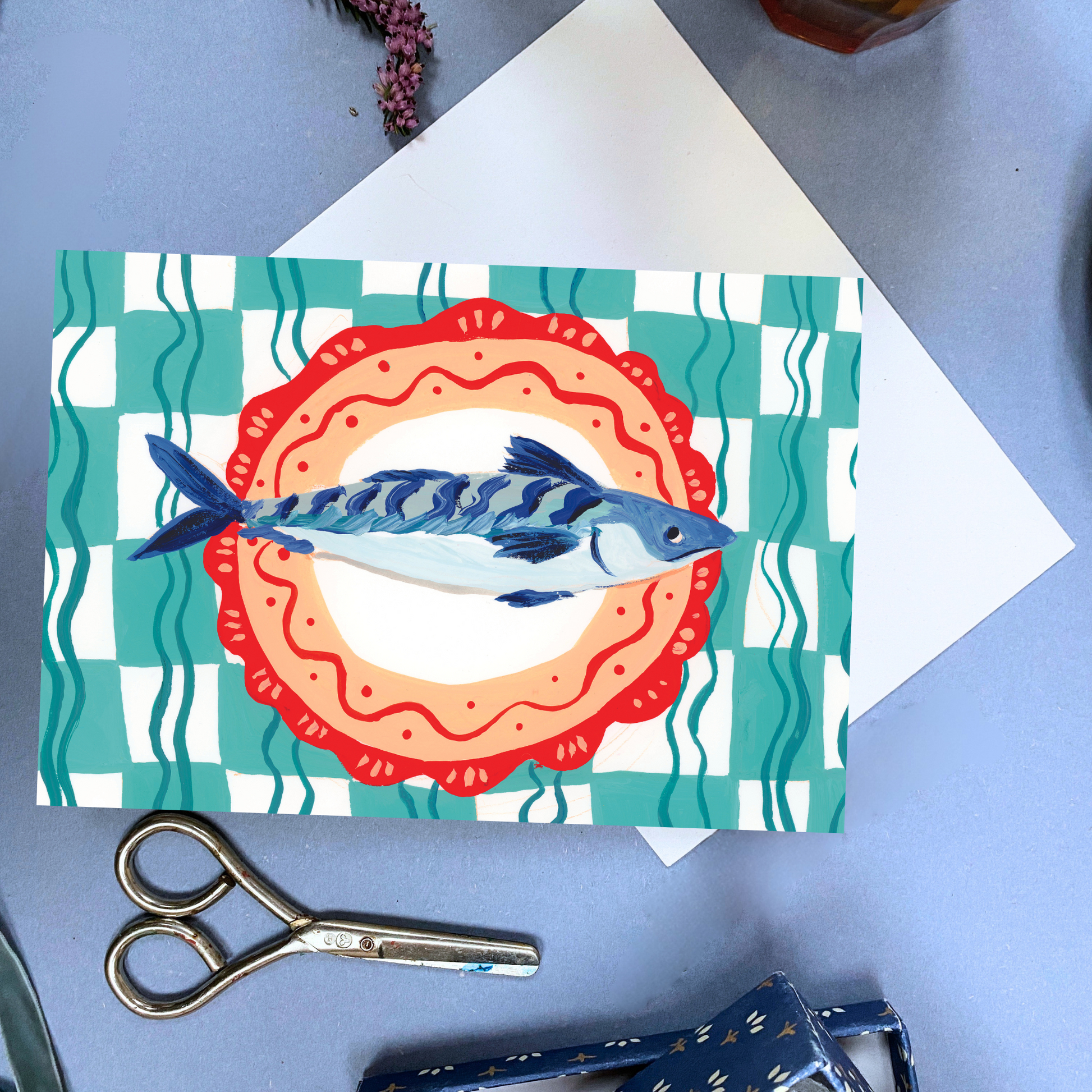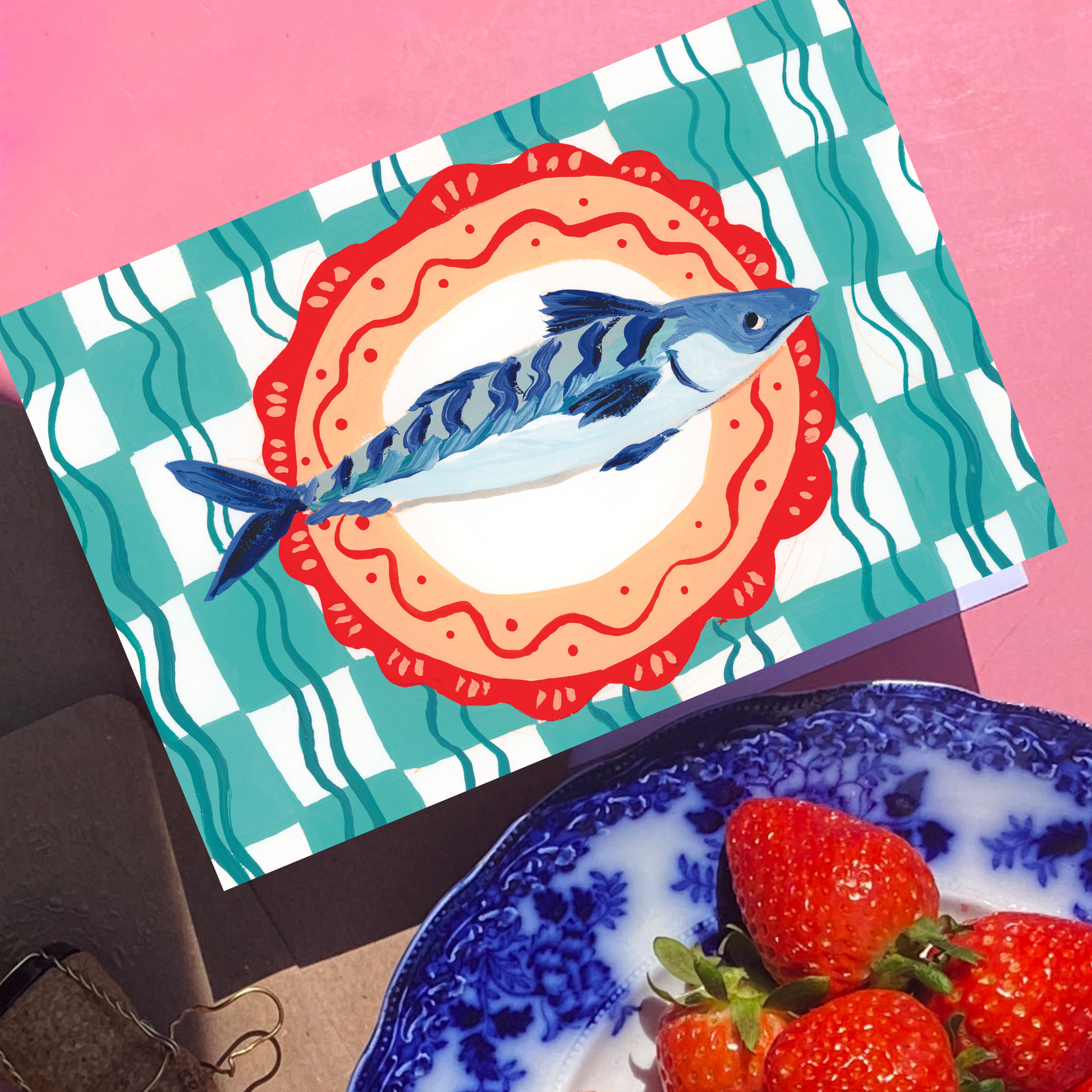 I studied in Falmouth, and this little painting is a love letter to that time. There’s something about a Cornish mackerel on a plate that brings me so much joy the colours, the memories, the sea air all captured with a whimsical flourish and a hit of vivara.