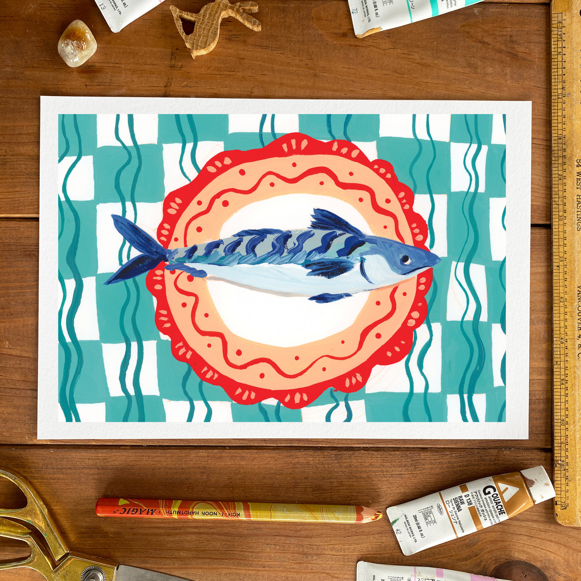 I studied in Falmouth, and this painting is a little love letter to that time. There's something about a Cornish mackerel on a plate that brings me so much joy. the colours, the memories, the sea air with a hit of vivara