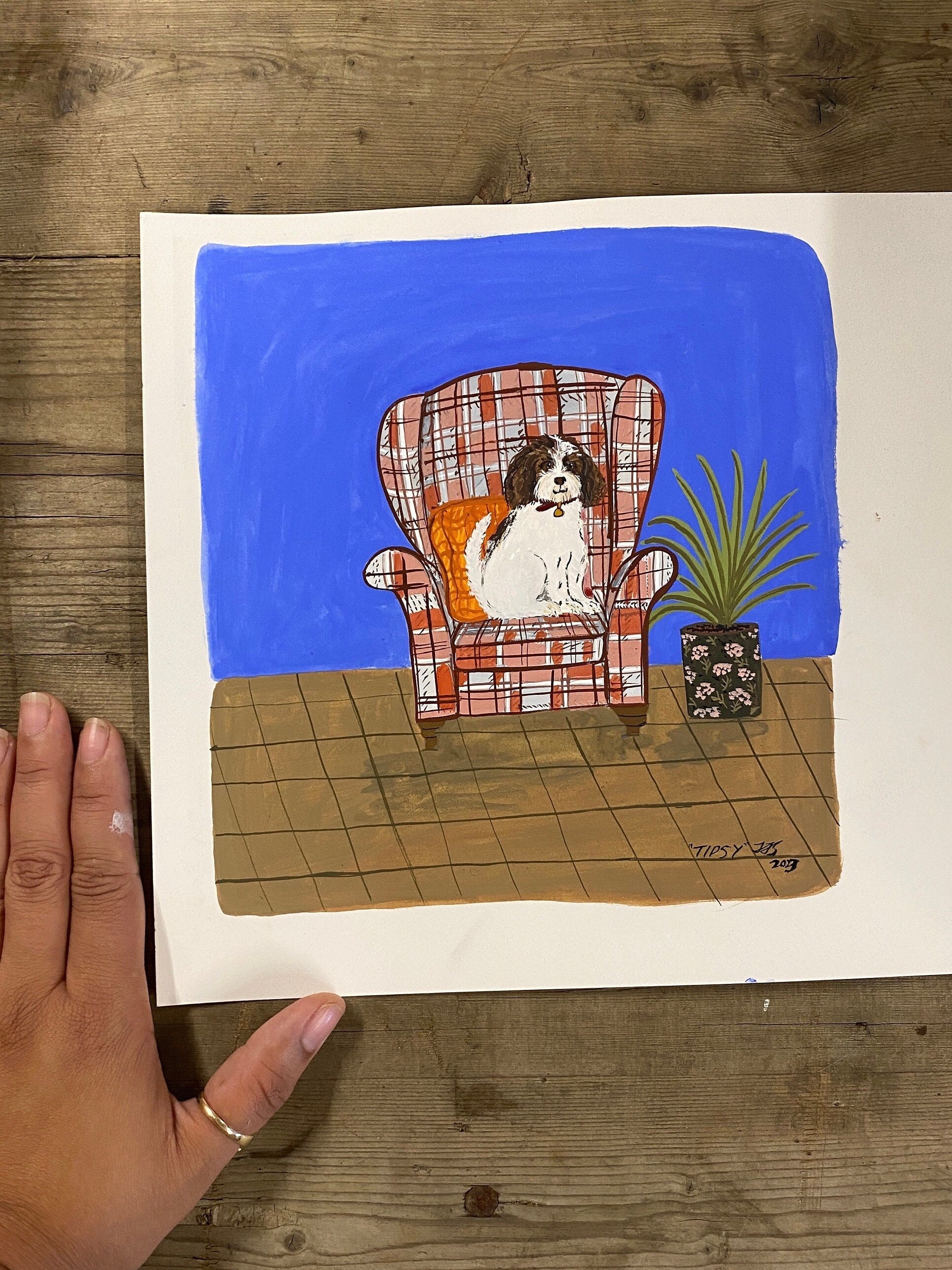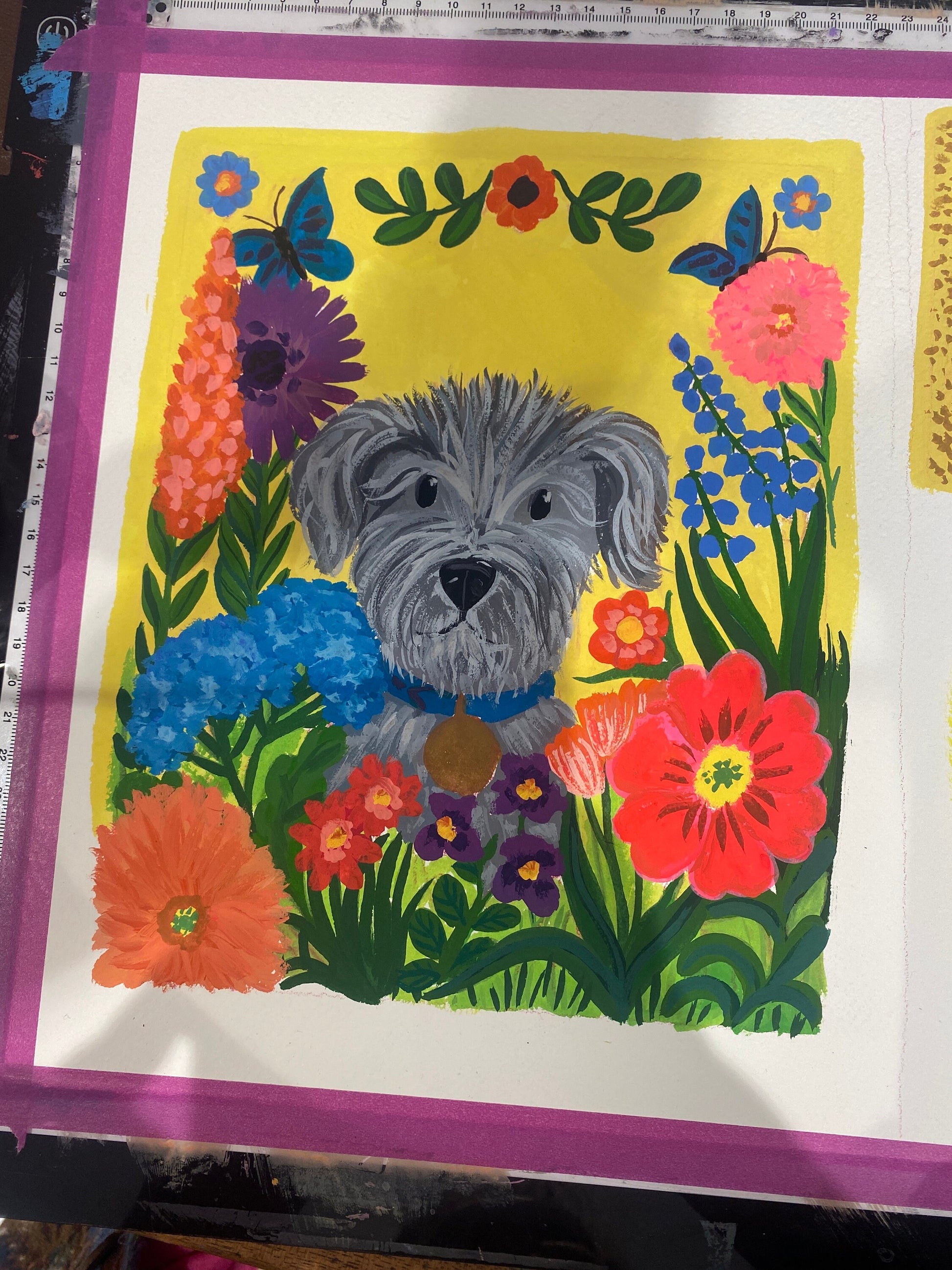 3. Once you approve the sketch, I will paint your pet's image using gouache paint. The artwork will be created on the finest quality watercolor paper.