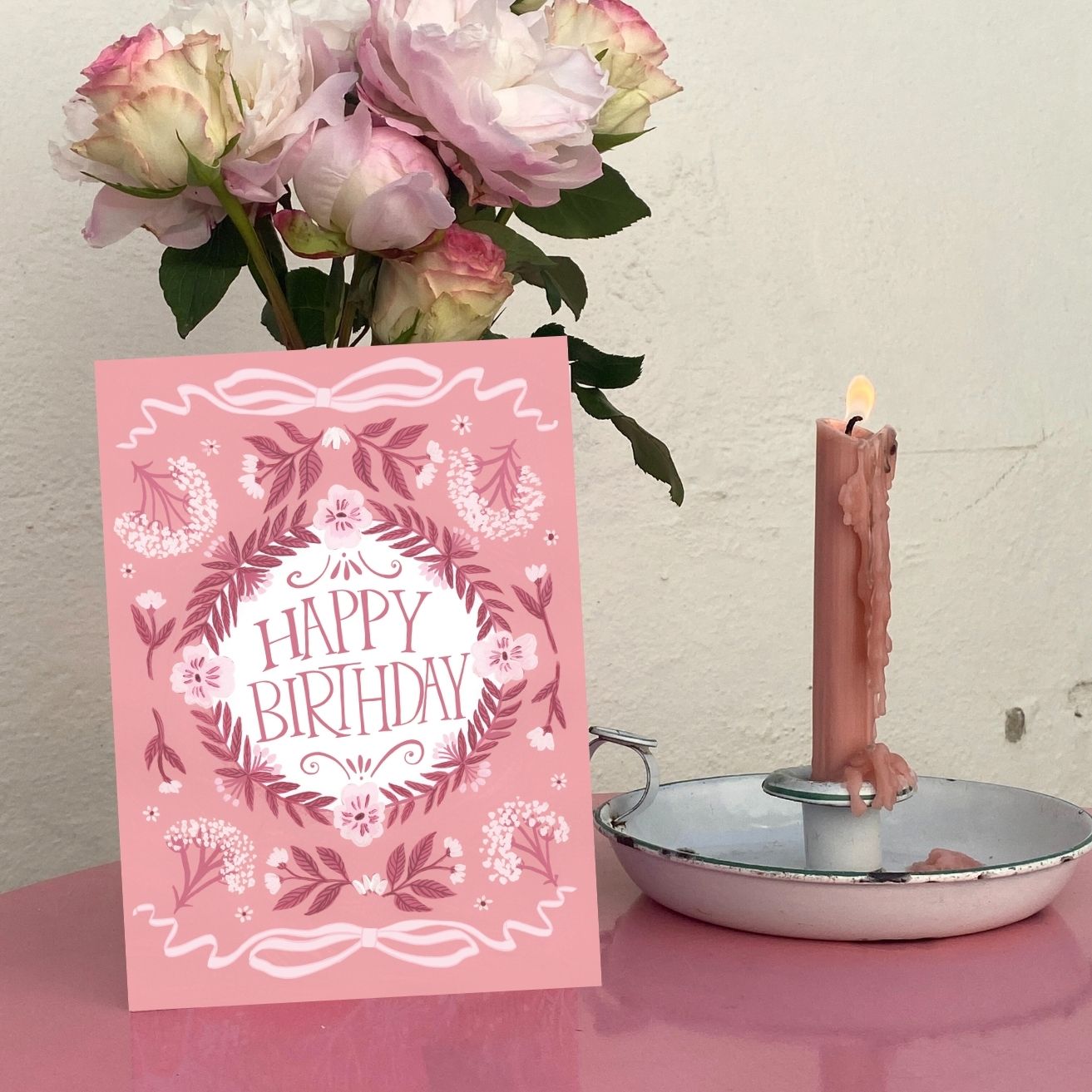 A classic birthday card with a floral, artistic twist, inspired by English summers in the Cotswolds.