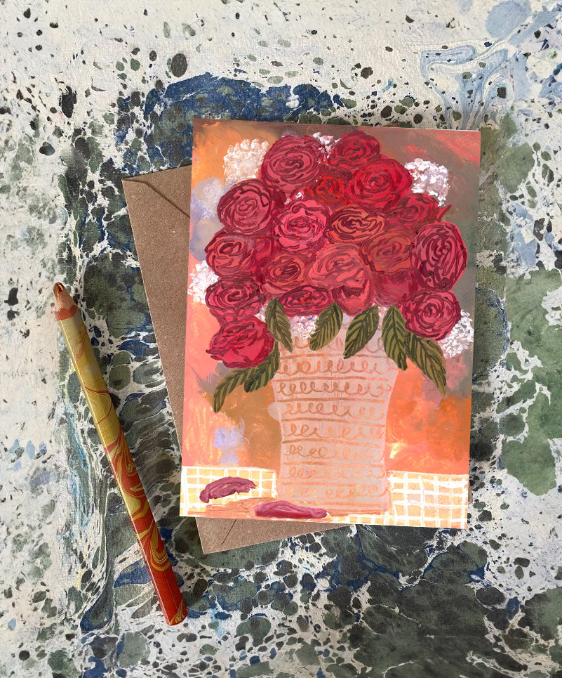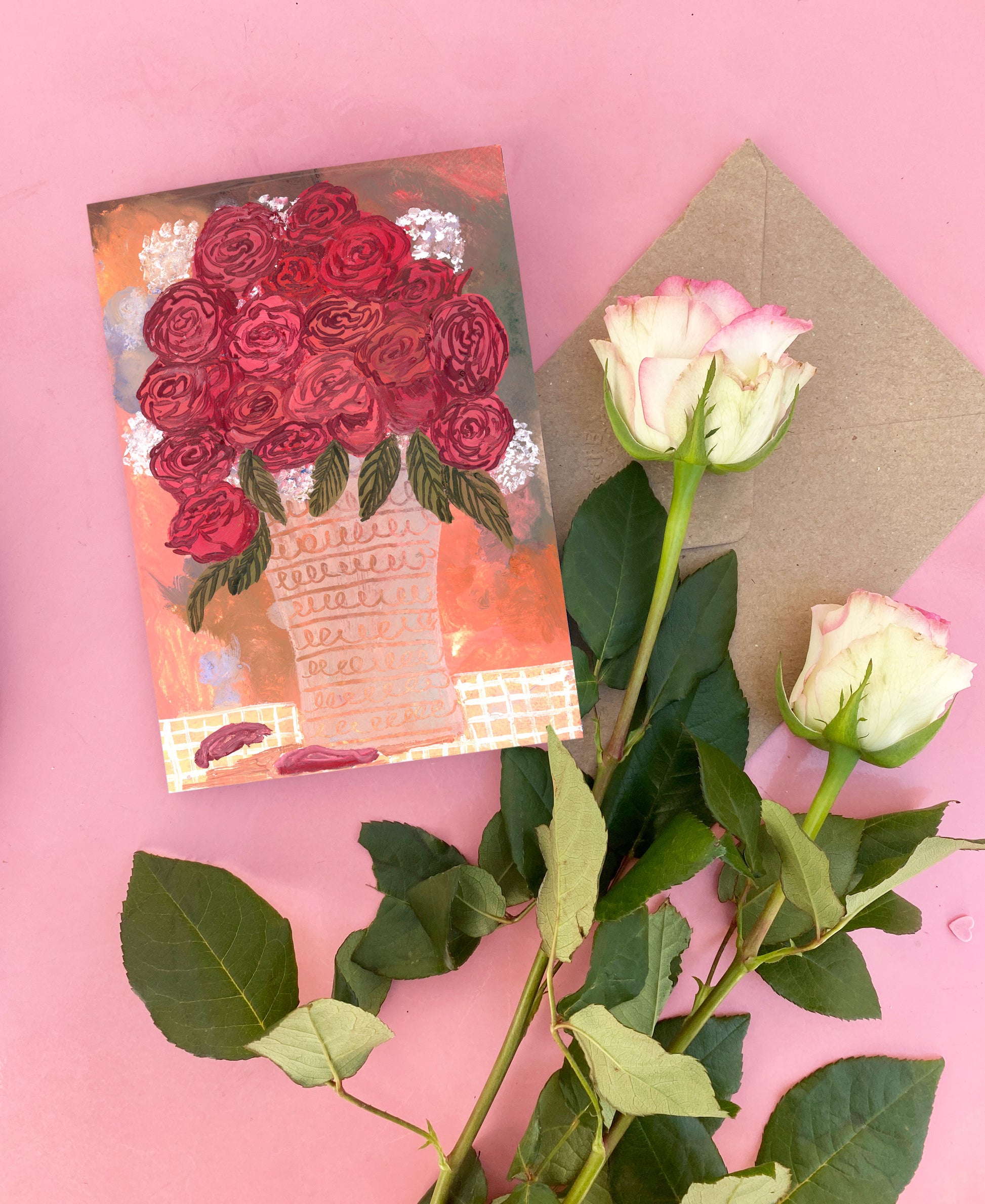 Celebrate life's moments with our exquisite Red Roses bouquet Greeting Card. This handcrafted card features a perfect thinking of you moment, making it a versatile choice. Whether you're sending it to a friend, family member, teacher or a loved one, the vivid design will brighten anyone's day!